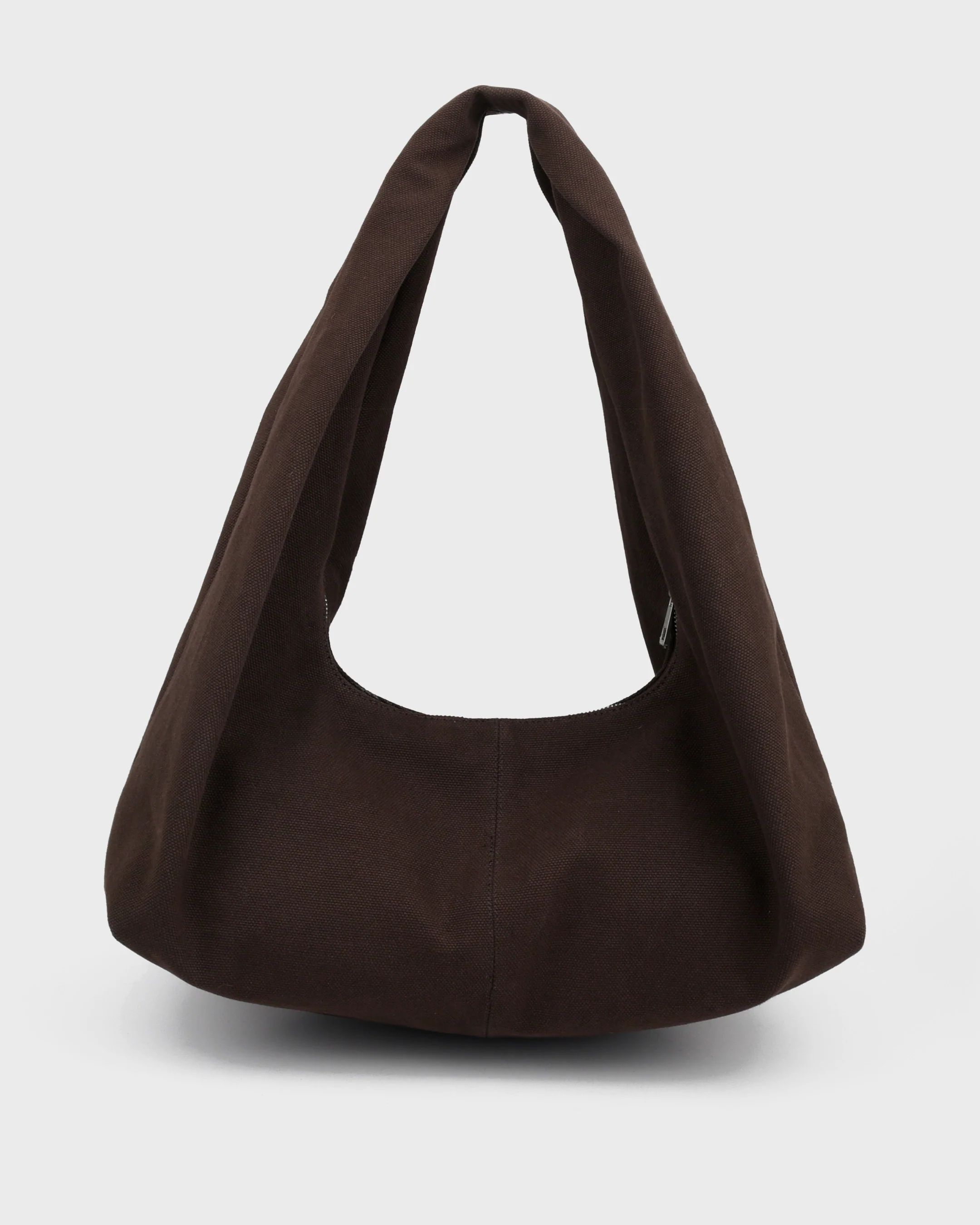 Alma Canvas Coffee from Núnoo x Lia is a spacious shoulder bag with one large main compartment. It closes with a zipper and is perfect for everyday use or work.