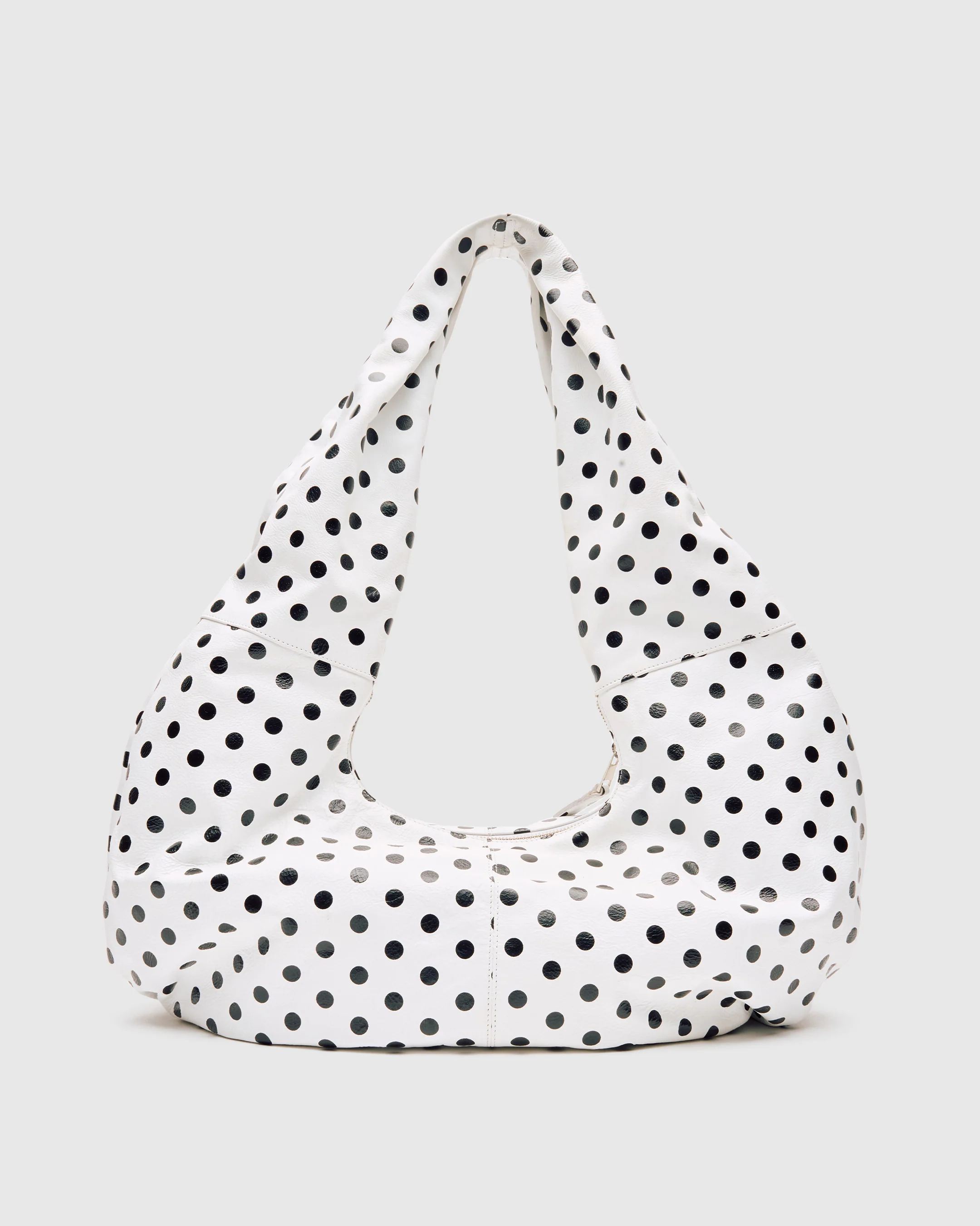 Big Alma Draped Polka White/Black is a stylish bag in an iconic polka dot pattern. The bag is spacious, features a zip closure, and is perfect for both everyday use and work