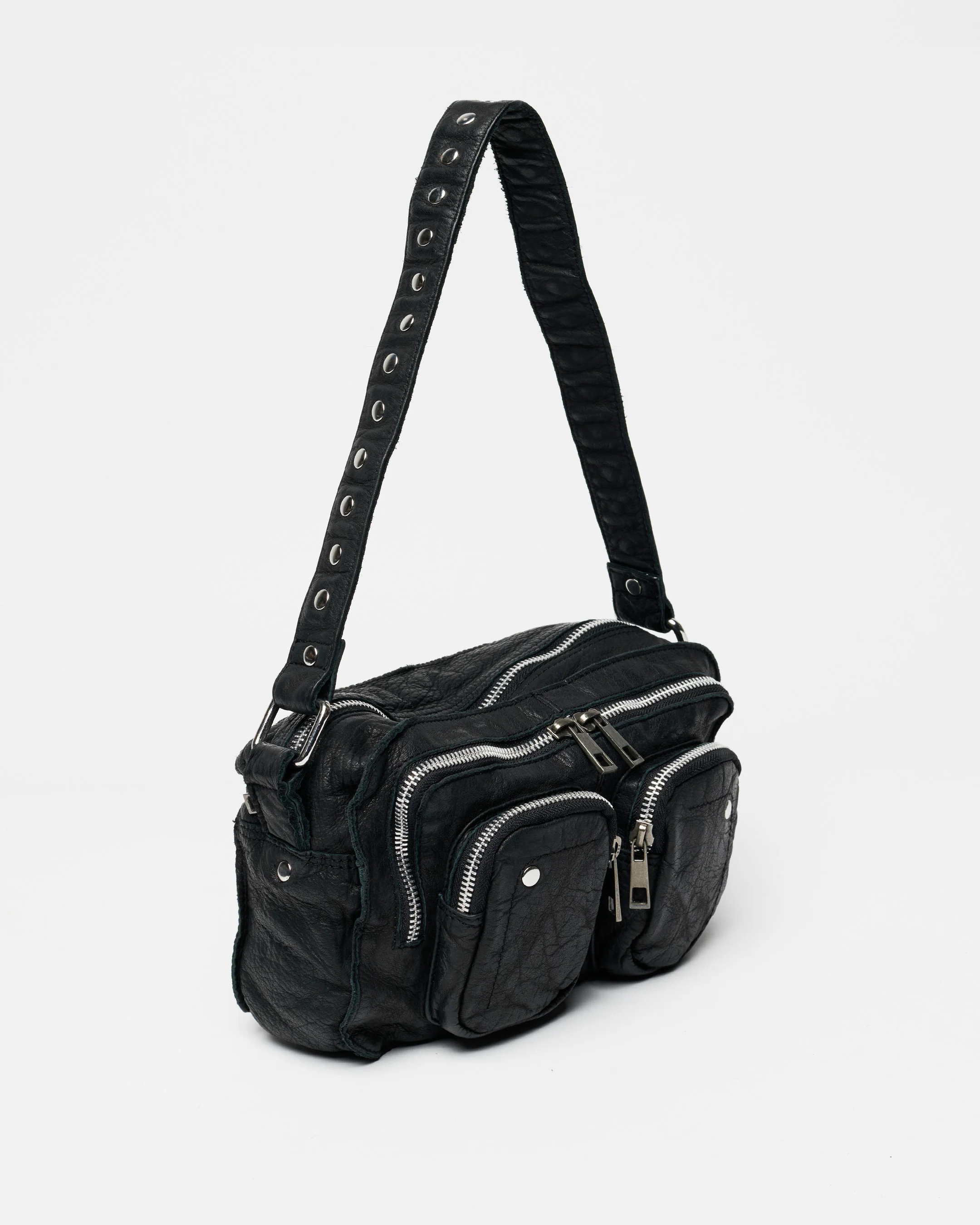 The material of the bag is "washed leather". Ellie has two large compartments and two small pockets on the front - both close with a zip.